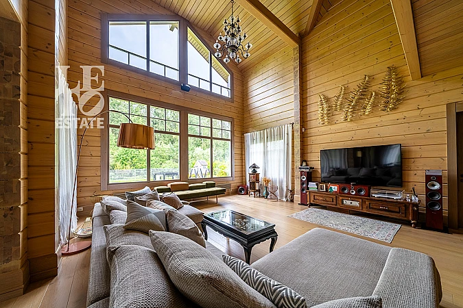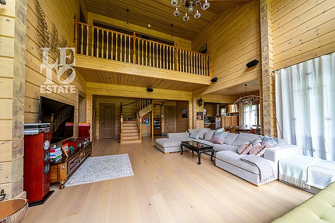 Стильный и продуманный дом "под ключ" построен из клееного бруса по индивидуальному проекту на ленточном основании. Общая площадь 230 кв.м. Внутренняя отделка полностью соответствует внешнему облику. Интерьер дома наполнен атмосферой спокойствия и загородного уюта, благодаря сбалансированности оттенков и предметов декора. Обилие естественного света, экологически чистые материалы, легкость дизайна дарят пространствам свежесть и ощущение комфорта. Дом обставлен всей необходимой мебелью, среди которой эксклюзивные изделия из слэбов карагача (обеденный стол, изголовье кровати). Техническое оснащение также организовано на высоком уровне: аудиосистема Bowers & Wilkins, бытовая техника Liebherr, Bosch и множество других заслуживших доверие брендов.