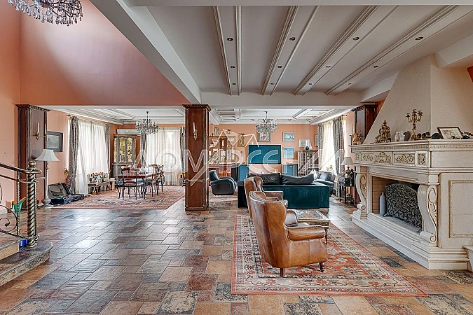 Уникальный дом под ключ на великолепном участке в жилом поселке. На территории три строения: дом 500 кв.м, гараж с квартирой для персонала 210 кв.м и беседка/барбекю 65 кв.м.
