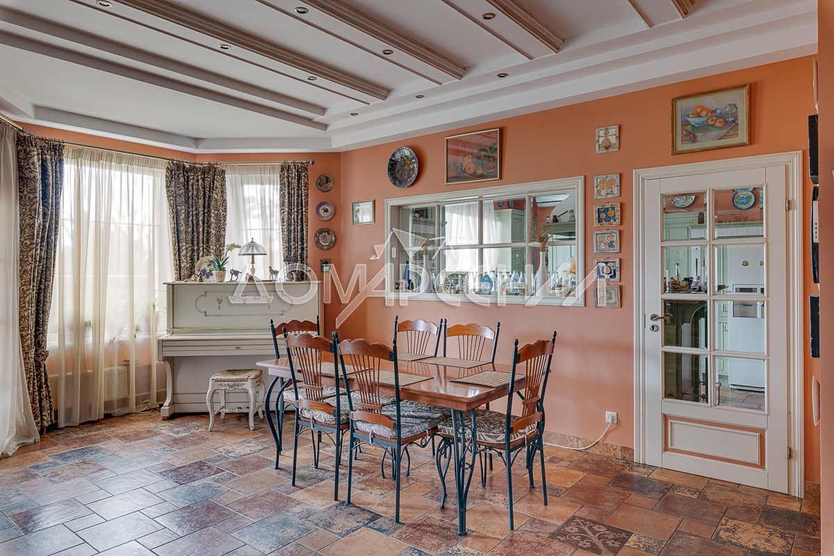 1-й этаж: холл, просторная гостиная, функциональная кухня, столовая, большой кабинет, гардеробная, сауна с уютной комнатой отдыха, с/у. 2-й этаж: холл, мастер спальня с с/у и гардеробной, 3 спальни, с/у, гардеробная. Великолепный участок 20 соток с ландшафтным дизайном. Высажены декоративные и плодовые деревья и кустарники. На участке расположены: Летняя кухня с зоной барбекю, открытая беседка исполнена ручной ковкой, гостевой дом, зона отдыха. Отдельное здание включает в себя: гараж на 2 автомобиля, 3-х комнатная квартира для персонала, вольер для собак крупных пород.