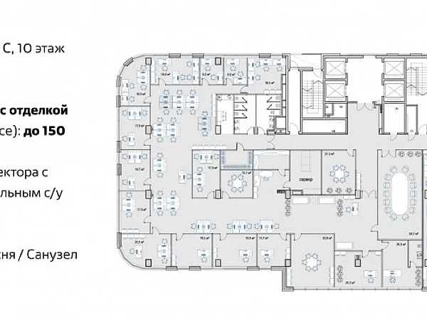 . Десятый этаж, окна по периметру, смешанная планировка, есть своя кухня, качественный ремон, возможность организации 120 рабочих мест, приточно-вытяжная вентиляция, кондиционирование, высокие потолки.