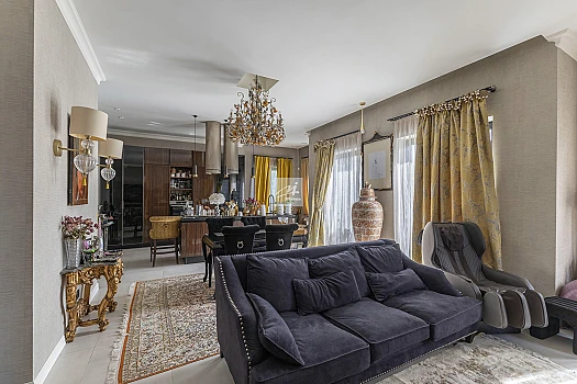 В доме 4 спальни, большая гостиная со вторым светом (высота потолка 6 м) и кухня-столовая.