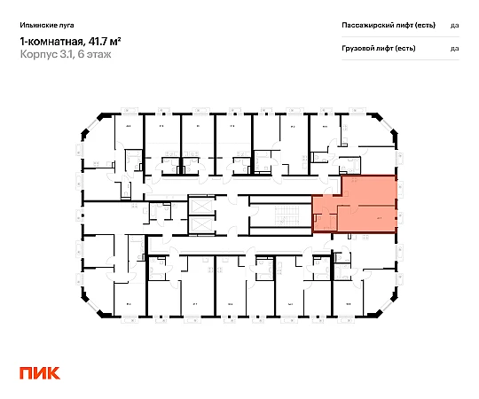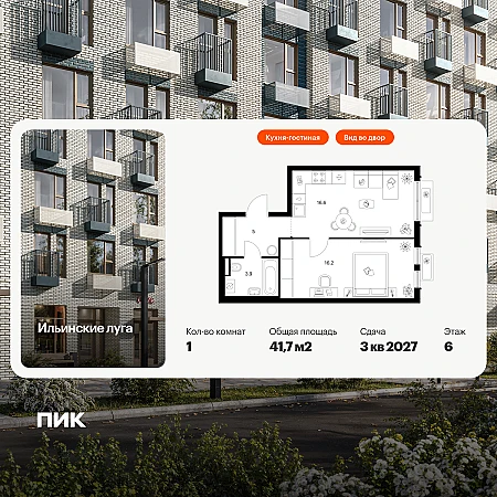Продаётся 1-комн.квартира площадью 41.70 кв.м на 6 этаже 9 этажного дома (Корпус 3.1, секция 4) проекта ПИК Ильинские луга. Светлый просторный подъезд на уровне земли, функциональная планировка, большие окна, с отделкой.