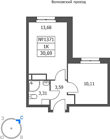 Купить 1к квартиру 30 м² в ЖК Волковская 67