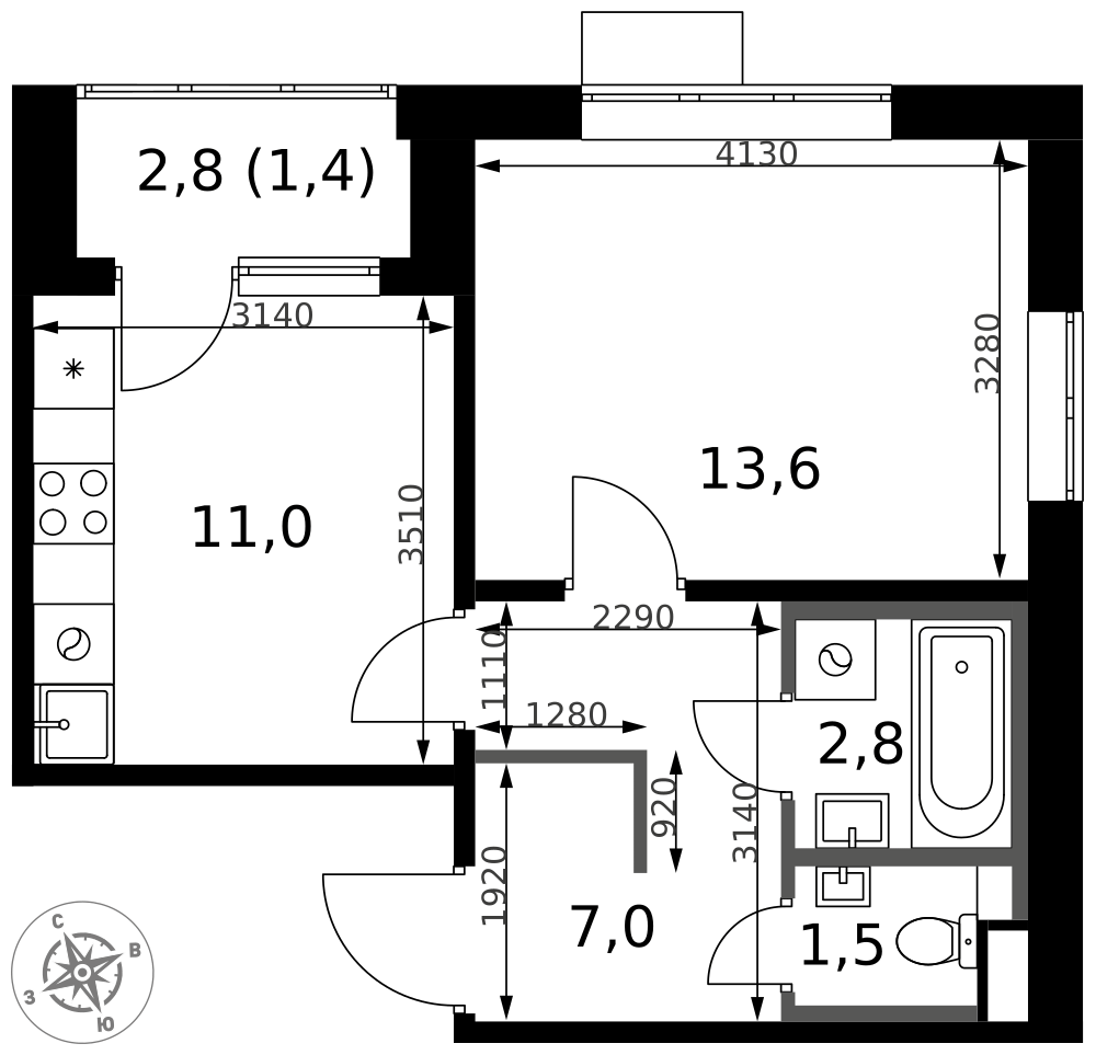 57 м²