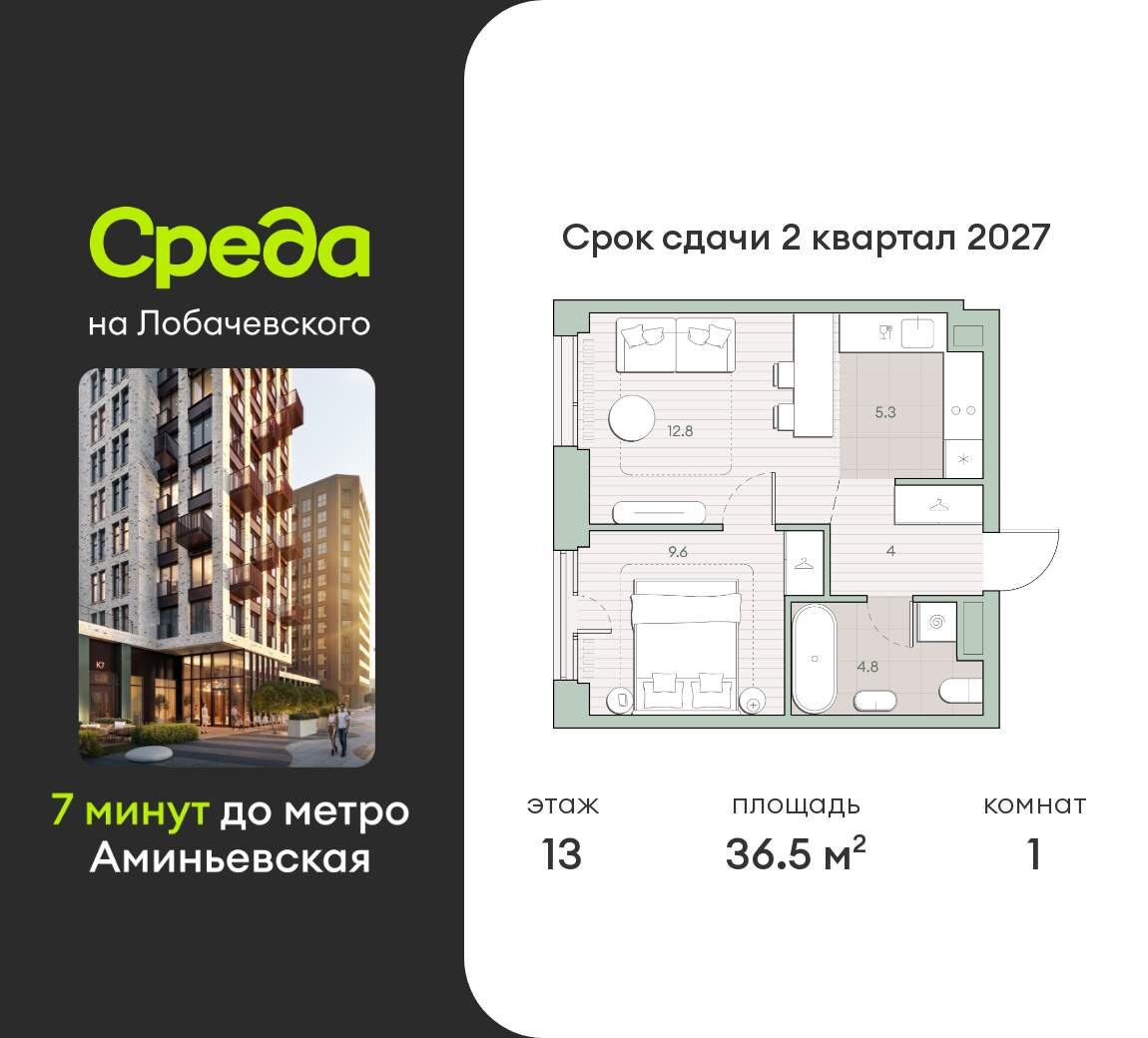 Купить 1к квартиру 38 м² в ЖК LIFE Варшавская
