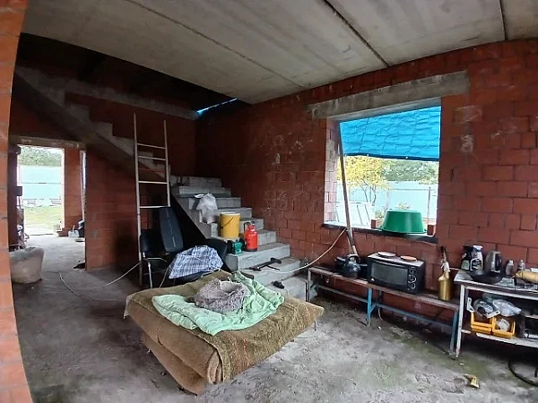 На участке расположен недостроннный дом 2021 года постройки, общей площадью 137 кв. м. (по документам), назначение – жилой, можно прописаться. Дом из двойного кирпича, не требует утепления. Второй этаж не возведен, но положены плиты перекрытия (включен в общую площадь). Фундамент – бетонная плита, залито 6 машин бетона в котлован – 2 метра глубиной: подушка из песка и двойная обвязка арматурой. Также сделаны выводы из дома для коммуникаций: водоснабжение, канализация. На 1 этаже запланировано: кухня-столовая, гостиная, подсобное помещение, ванна, туалет, сауна, прихожая, бойлерная. Строили для себя, качественно, надежно, все новые стройматериалы, без экономии!