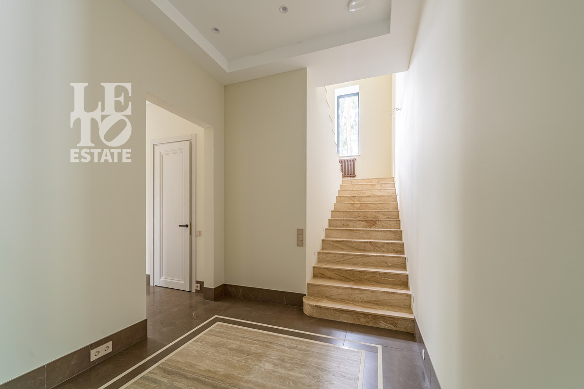 Вход в дом осуществляется через крыльцо с подогревом, с которого вы попадаете в просторный холл, предусмотрена просторная гардеробная, гостевой санузел, а также мастер-спальня на первом этаже с собственной гардеробной и санузлом. Котельная имеет отдельный вход с улицы, также имеется постирочная. Спальня с гардеробной и собственным санузлом, а также просторная кухня-столовая и гостиная с выходом на террасу и прекрасным видом на участок сделают проживание в данном доме максимально комфортным.