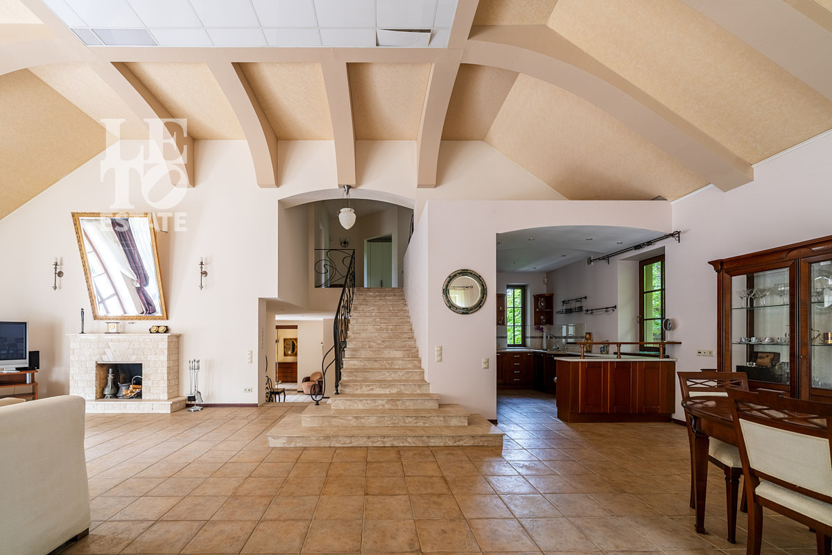 Во внутренней отделке использованы качественные дорогие материалы, ремонт выполнен в классическом стиле, дом продается полностью укомплектованным мебелью и техникой. Просторная гостиная с высоким потолком и дровяным камином, благодаря большим окнам, наполняется солнечным светом, а также имеет выход на террасу, где можно наслаждаться свежим воздухом. Также важно отметить наличие двух спален и кабинета на первом этаже дома.