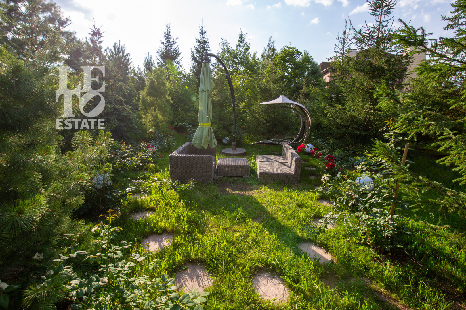 На участке 18 соток расположены баня, дом для персонала и гараж на три машины.