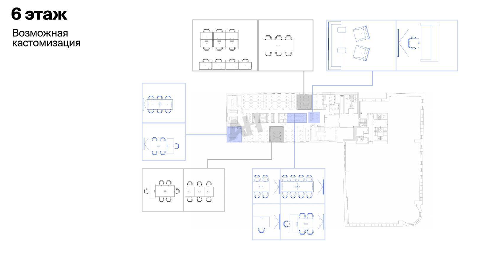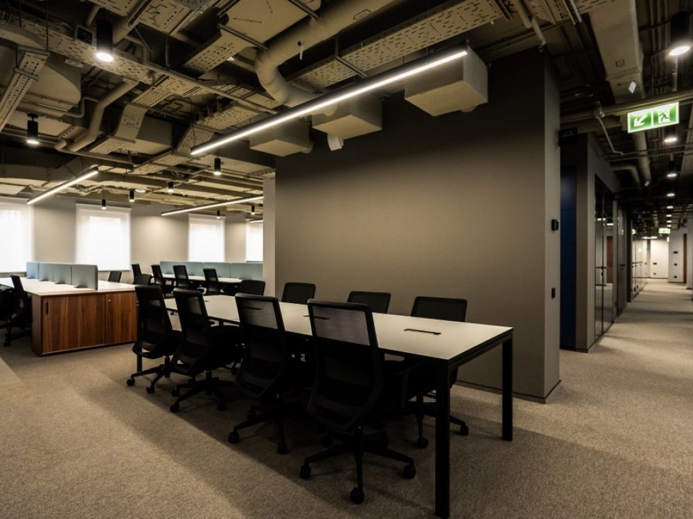Помещение полностью меблировано и готово к въезду. Офисный блок имеет эффективную планировку смешанного типа, включает переговорные комнаты и клиентскую зону. Отделка выполнена по офисному стандарту, представлены форматы VIP-офиса и лофта.