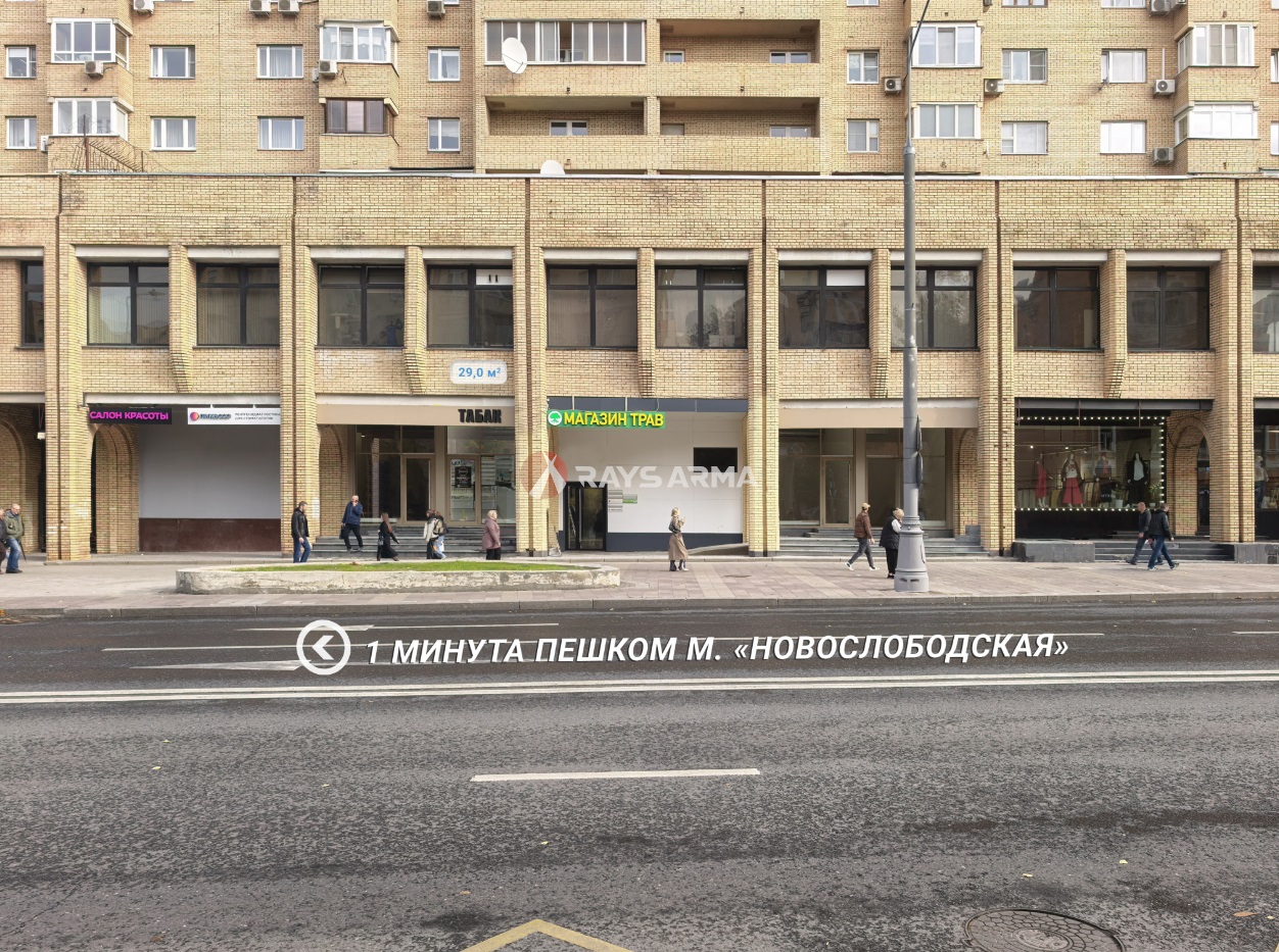 Номер лота на нашем сайте: 44670. Продается помещение с арендатором площадью 29 м 2 на 1 этаже жилого здания. Шаговая доступность от ст. метро Новослободская 1 минута пешком.