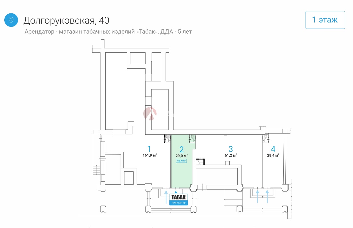 Арендатор : Сеть магазинов Табак .