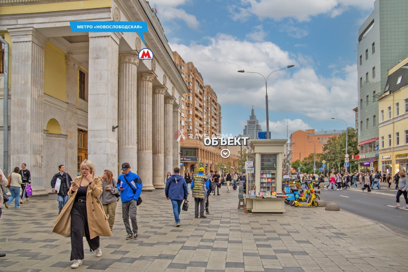 Помещения расположены в крупном сложившемся жилом и деловом районе с высокой плотностью застройки и развитой инфраструктурой. БЦ Garden Ring Building , Оружейный , Эрмитаж плаза , ЖК Итальянский Квартал , Cameo Moscow Villas и В непосредственной близости расположены БЦ Garden Ring Building , Оружейный , Эрмитаж плаза , ЖК Итальянский Квартал , Cameo Moscow Villas и Ласточкино гнездо , офис Сбербанка и другие.