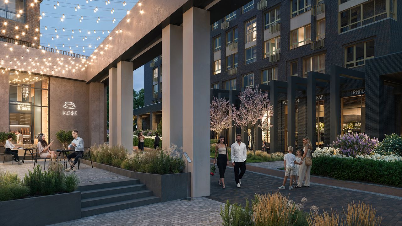 На первых этажах домов, во встроенно-пристроенных и отдельно стоящих зданиях предусмотрены помещения под магазины, сетевые супермаркеты, кафе, рестораны, бытовые сервисы, детские, медицинские, спортивные и другие объекты.