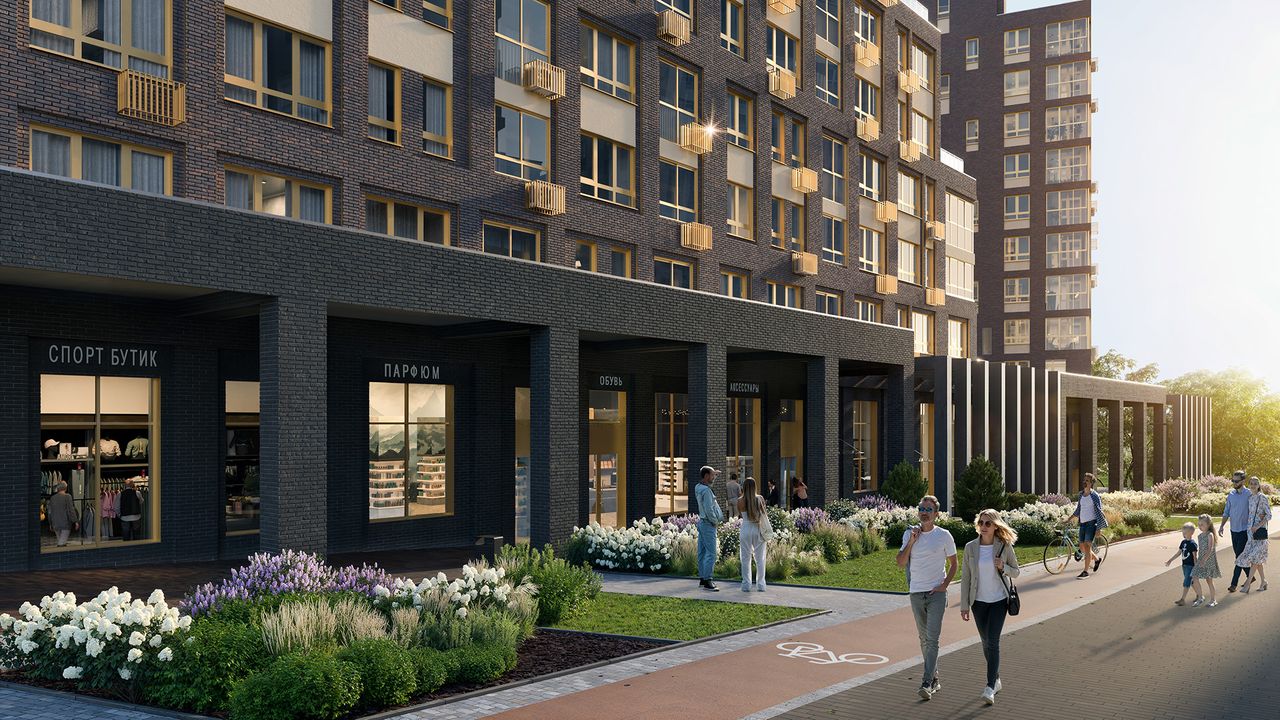 На первых этажах домов, во встроенно-пристроенных и отдельно стоящих зданиях предусмотрены помещения под магазины, сетевые супермаркеты, кафе, рестораны, бытовые сервисы, детские, медицинские, спортивные и другие объекты.