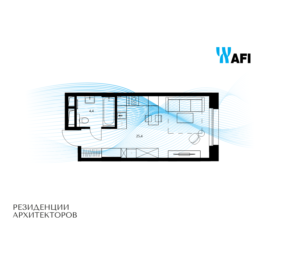 Продаются просторные апартаменты-студия общей площадью 29,8 м² на 10 этаже в сданном жилом квартале "Резиденции Архитекторов" вблизи с метро “Электрозаводская” и БКЛ “Электрозаводская”.