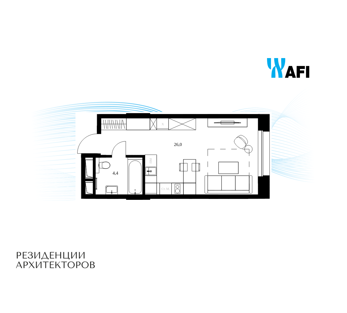 Продаются просторные апартаменты-студия общей площадью 30,4 м² на 7 этаже в сданном жилом квартале "Резиденции Архитекторов" вблизи с метро “Электрозаводская” и БКЛ “Электрозаводская”.