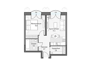 Купить 1к квартиру 39 м² в квартале Резиденции Архитекторов