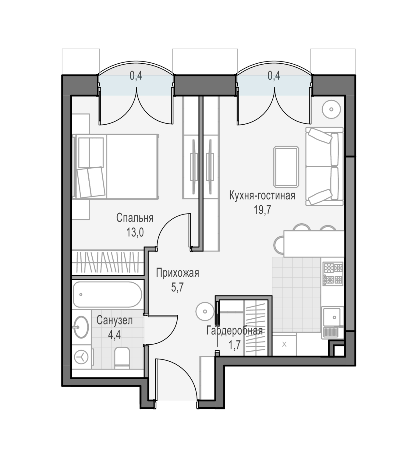 44 м²