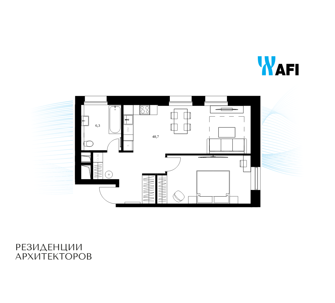 Купить 2к квартиру 55 м² в квартале Резиденции Архитекторов
