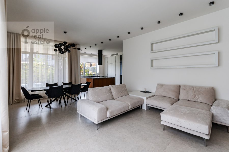 - гостиная, совмещенная с кухней, столовой зоной и выходом на террасу, кабинет, ванная комната с душевой, холл, постирочная;