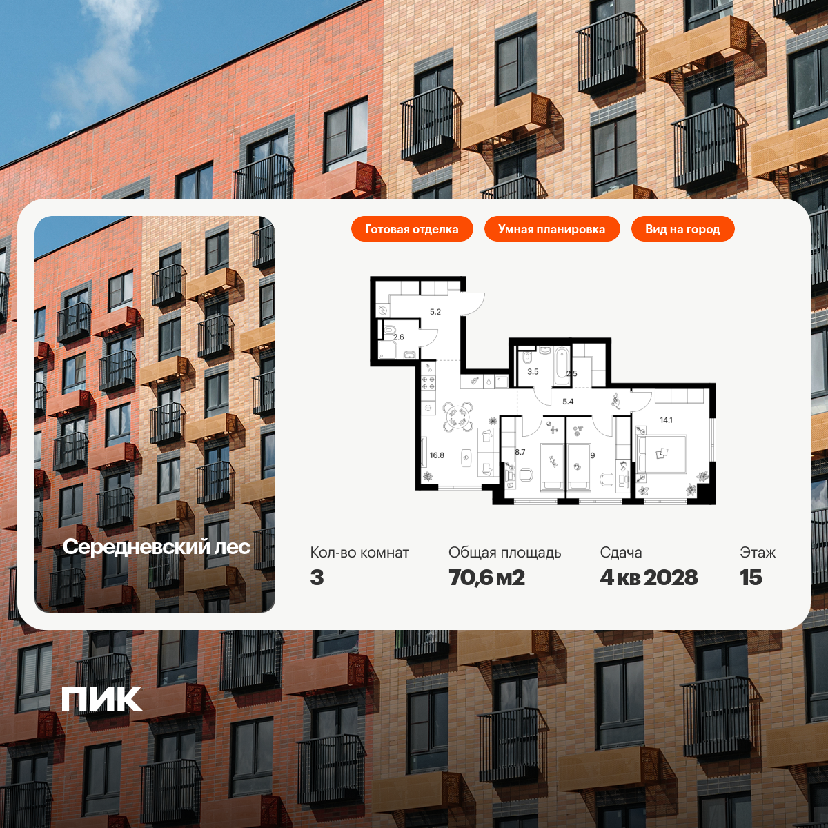Эта квартира в ЖК «Южная Битца» идеально подойдёт для тех, кто ценит комфорт и безопасность. Расположенная на 19 этаже 25-этажного панельного дома, построенного в 2021 году, она предлагает отличный вид и удобство современной жизни. Общая площадь квартиры составляет 84,9 кв. м, Большая квадратная кухня более 13 метров. Высота потолков 2,8 , что создаёт ощущение простора. Мебель остается новым владельцам.