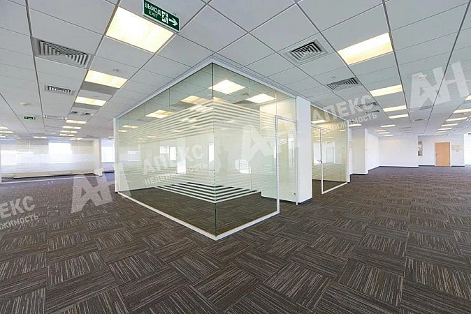 Лот №927686 Предлагается к аренде офисное помещение общей площадью 1 384 м². Планировка смешанная, включает в себя восемнадцать кабинетов, три переговорные комнаты, конференц-зал, зону генерального директора, кухню, серверную и архив.