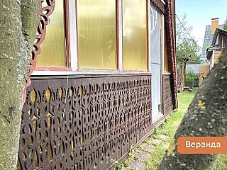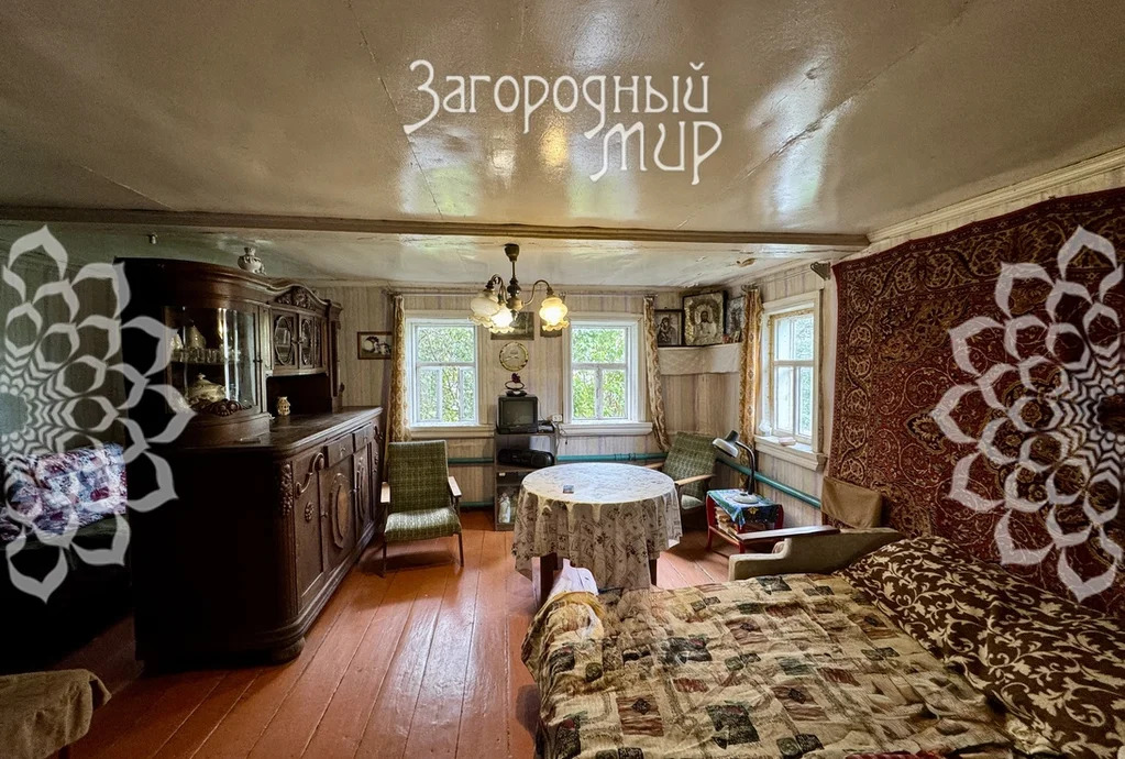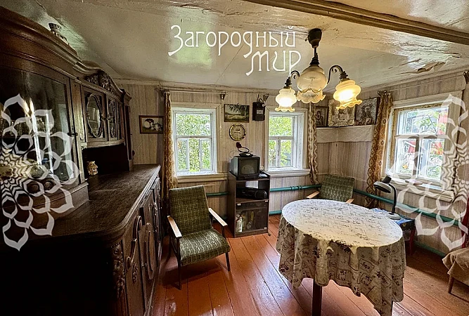 Общая площадь 32 кв.м., отделка "под ключ", материал стен бревно, кровля оцинкованный лист. В доме одна спальня площадью 27 кв.м., кухня 5 кв.м. и веранда 9 кв.м. с подсобным помещением площадью 4,6 кв.м. Также в доме имеется подпол. Состояние дома жилое. Имеется разрешение на реконструкцию.