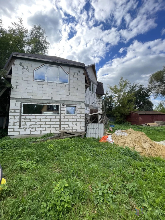 Второй дом — блочный, 130 квадратных метров, недостроенный. Фундамент ленточный. Дом можно использовать как основной, гостевой или баню. Все коммуникации подведены. На первом этаже — прихожая и комната, на втором — две комнаты.
