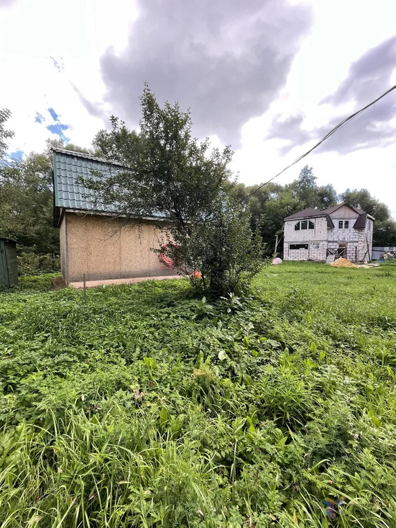 Участок огорожен и находится на краю, с одной стороны соседи. На территории есть хозблок и металлический гараж. Подъезд круглогодичный.