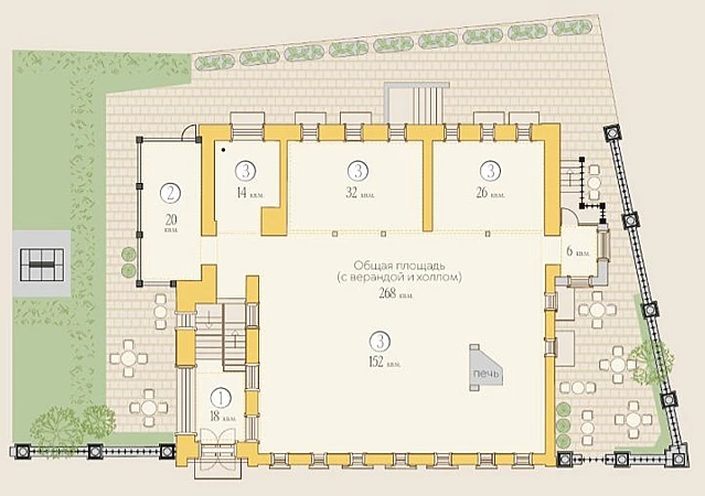 Потолки 5 метров, пилястры, массивные двери, восстановленные оконные колоды, исторические своды, действующая печь уникальный для Москвы проект,