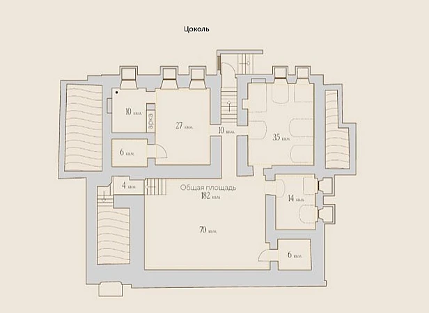 Цоколь 182 кв.м.: высота потолков 3,8 м,