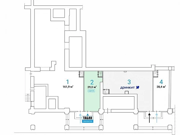 Продажа Street Retail помещения торгового назначения площадью 29,0 кв.м на 1 этаже жилого здания. Планировка — свободная, перекрытия — ж/б, высота потолков — 4,5 м.
