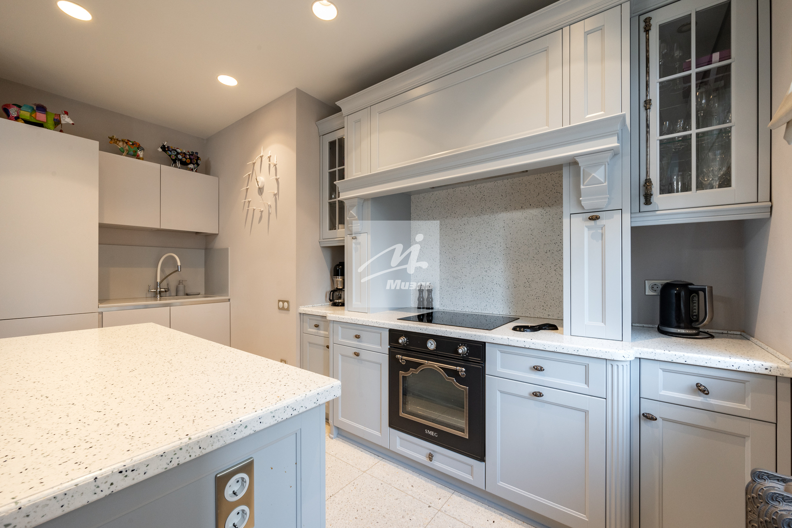 Мебель итальянских брендов, кухонная техника Smeg и Liebherr, винный шкаф - все включено в стоимость.