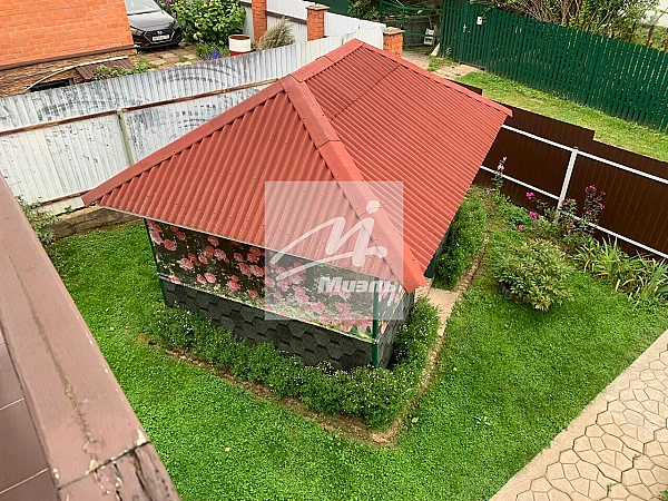 Участок прямоугольной формы, есть садовые кустарники и грядки. Идеально ухожен. Много цветов. есть теплица, беседка, хозяйственный домик, забетонированная площадка для автомобиля.