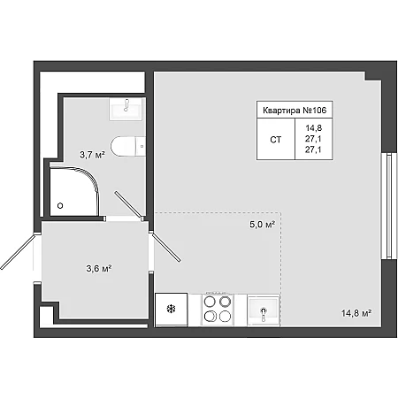 Купить квартиру студию 28 м² в ЖК Аникеевский