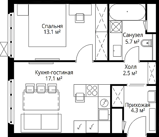 Купить 1к квартиру 42 м² в ЖК У реки. Эко Видное 2.0