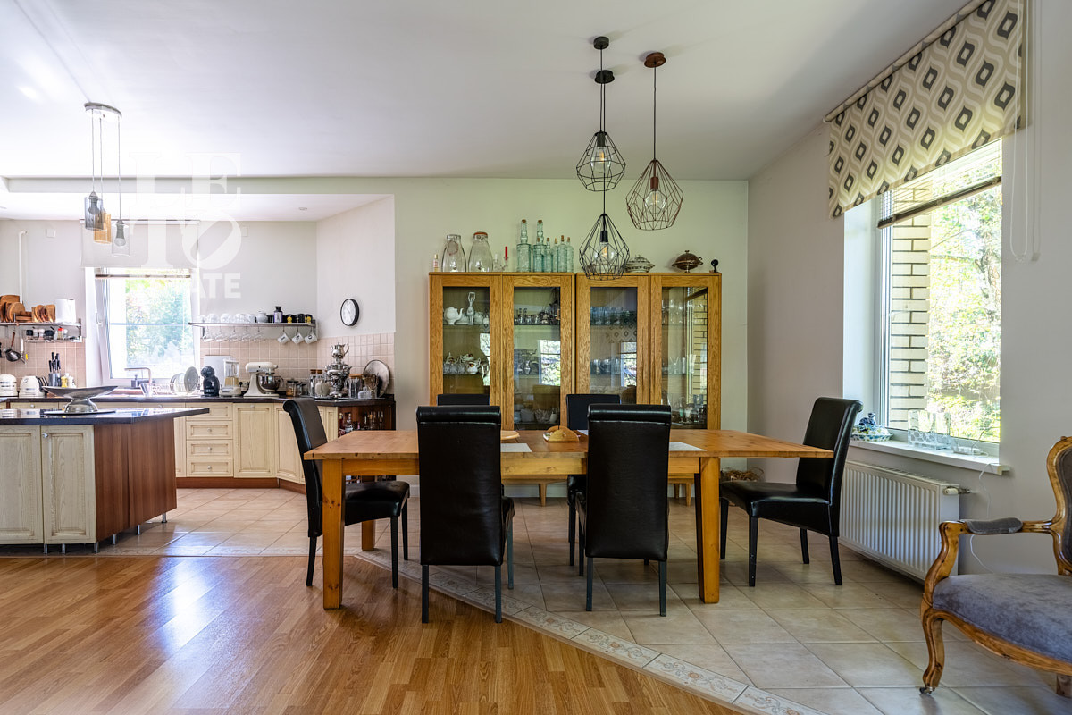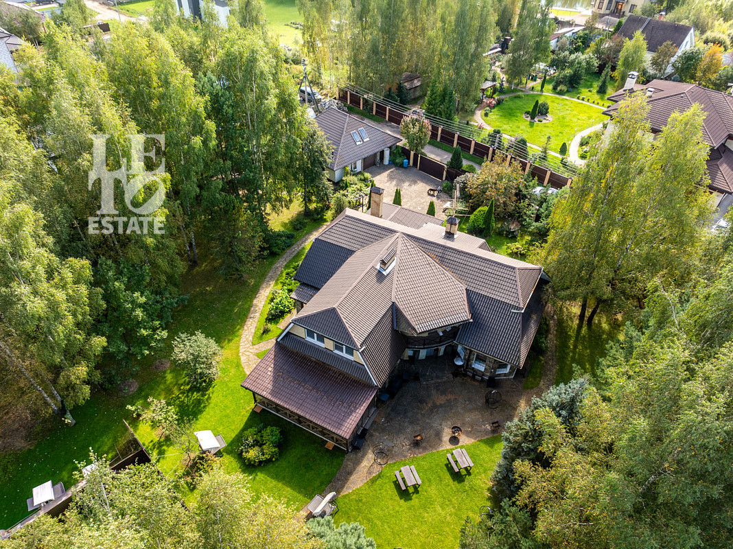 На земельном участке правильной формы 35 соток расположен двухэтажный дом общей площадью 407кв.м., и отдельно стоящий гараж с квартирой для персонала площадью 160 кв.м.