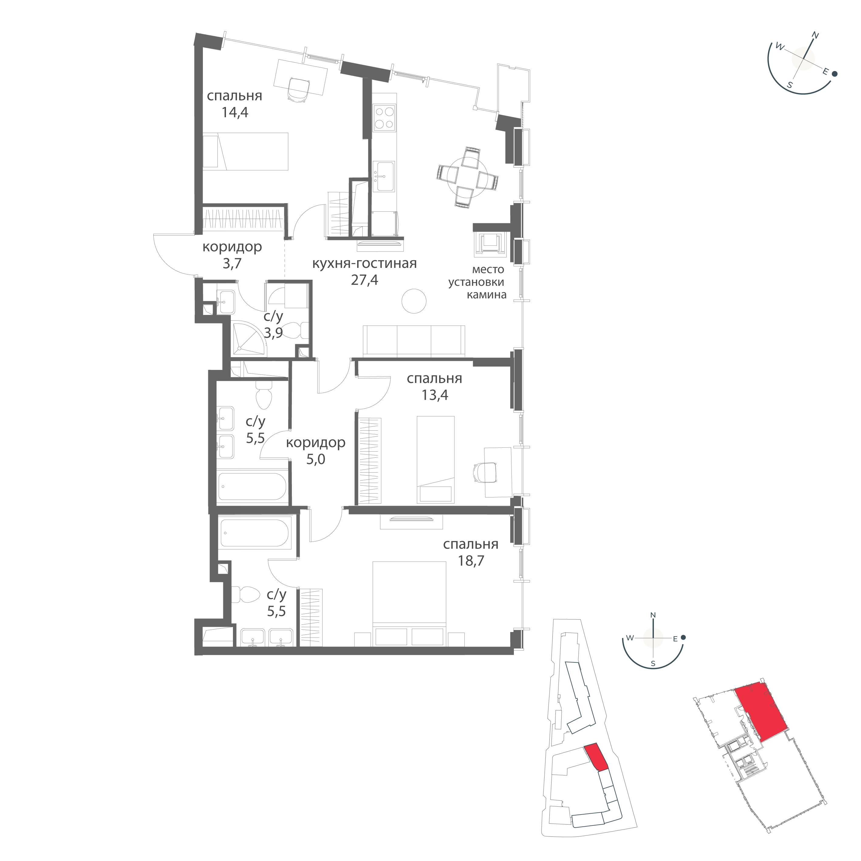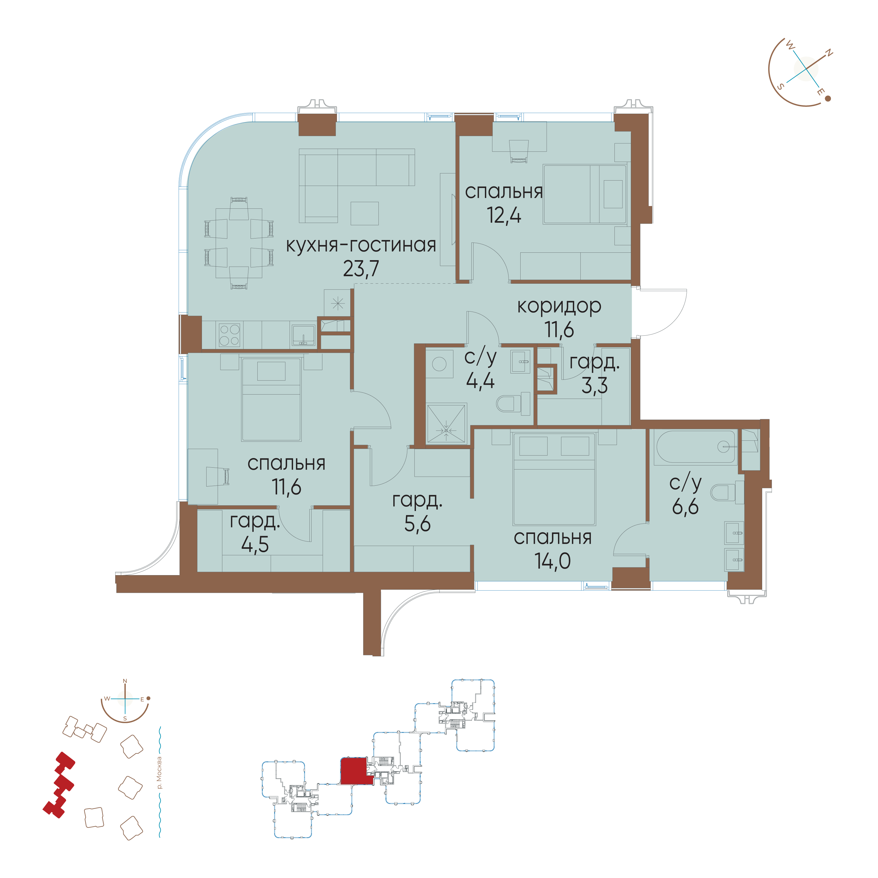 Стоимость квартиры со скидкой 8% при 100% оплате 55366704 руб.