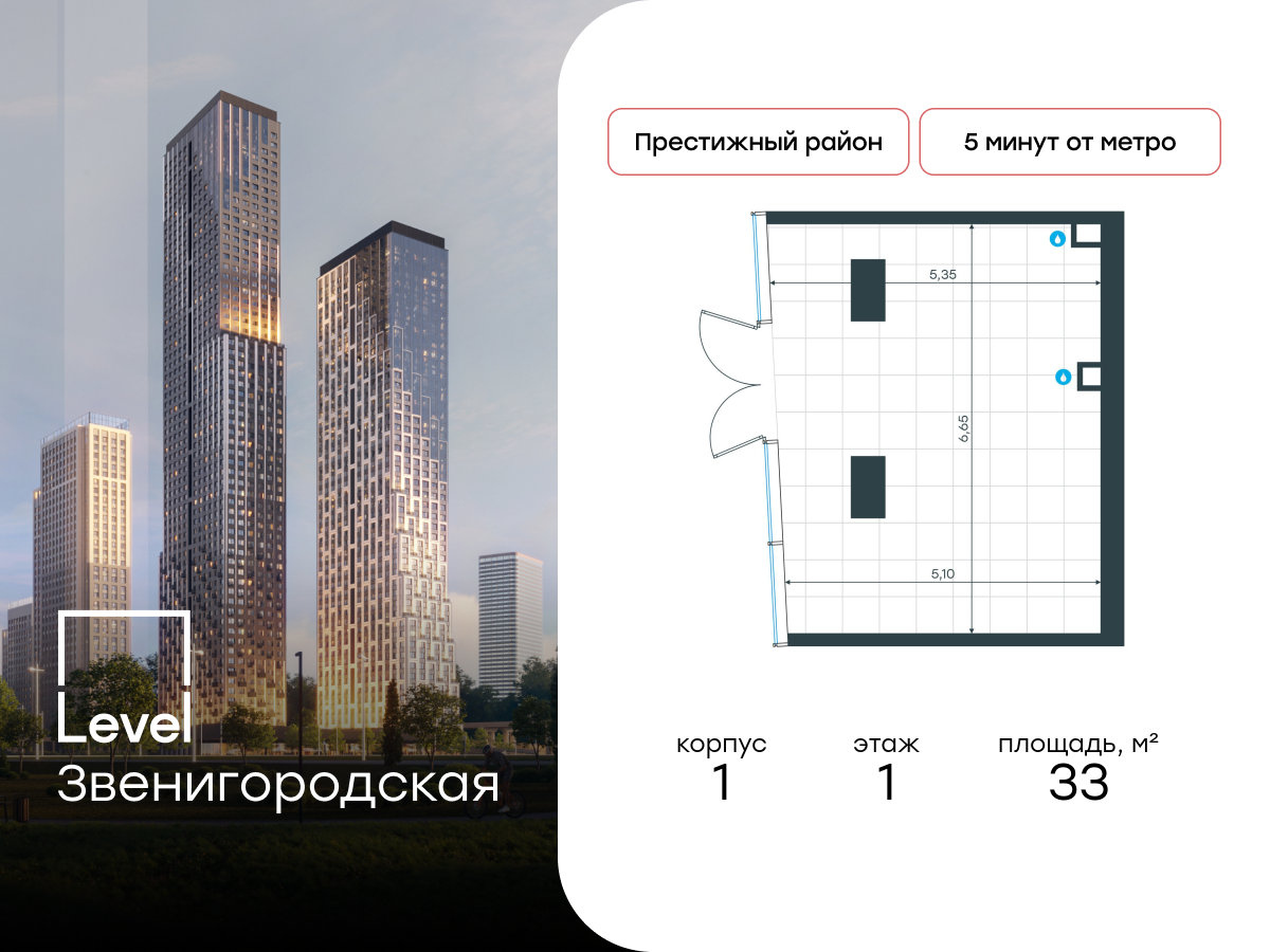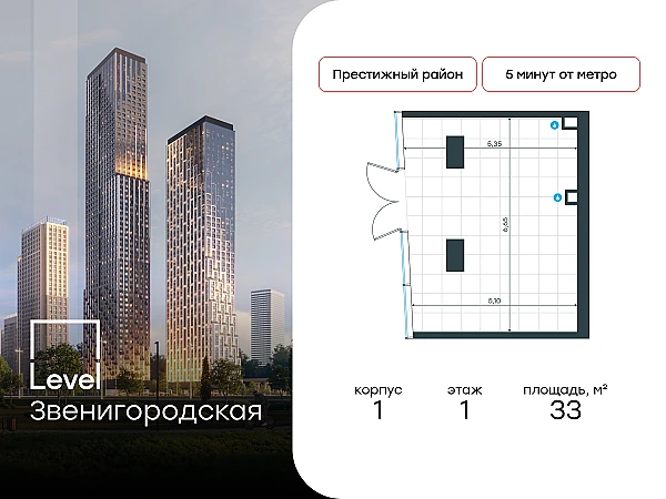 Купить ПСН 33 м² в ЖК Level Звенигородская
