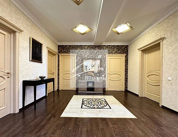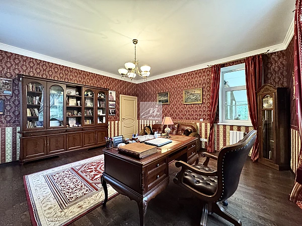 Обширное входное пространство (холл) с винтовой парадной лестницей, мастер-спальня с санузлом, гардеробной и балконом, и еще три гостевых спальни, библиотека, санузел.