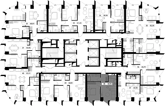 Особенностью проекта стала возможность выбирать и адаптировать планировки квартир под свои нужды. Здесь можно выбрать квартиры с постирочными, гардеробной или спальней с ванной комнатой. А можно выбрать квартиру со сквозным санузлом или планировку семейной квартиры со спальнями в разных сторонах гостиной. Артикул - 972277