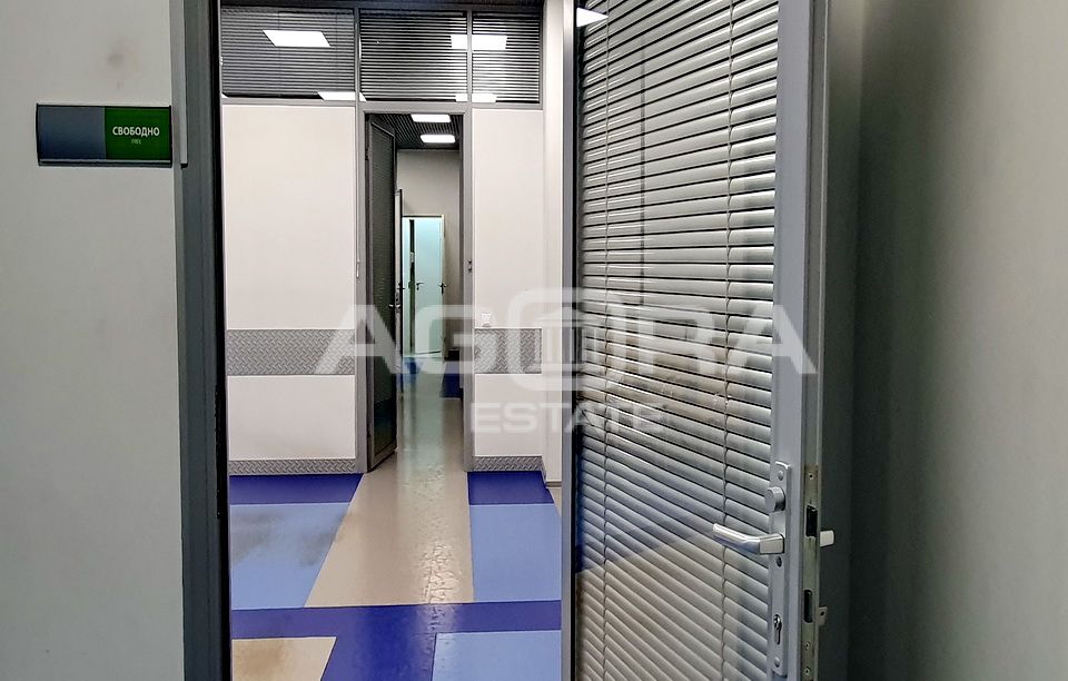 Зона ресепшен, кофе-пойнт с мокрой точкой, 2 кабинета, санузел, 2 переговорных; 67,7 м2 - входная группа, охрана, комната отдыха (охрана), коридор, гардероб, лестница, щитовая; санузлы и хозяйственный блок с мокрой точкой -22,4м2