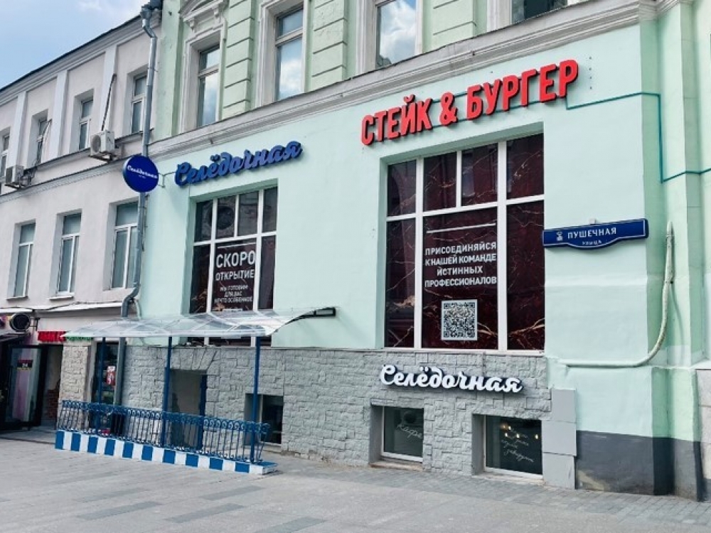 . Вывеска и вход помещения выходят на первую линию. Сверхинтенсивный пешеходный трафик.