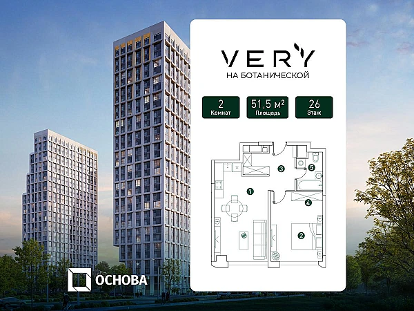 Купить 2к квартиру 51 м² в ЖК Very на Ботанической