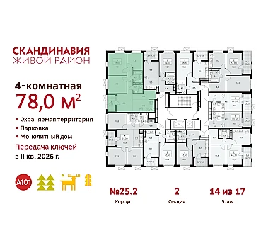 Большой выбор эргономичных планировок. Собственный двор-парк 20 000 м² с фонтаном, детскими и игровыми площадками, воркаут-зоной, живописным парящим мостом, кафе и беседками для отдыха.