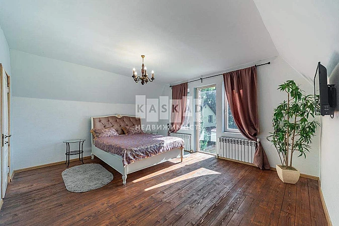 В охраняемом поселке предлагаем приобрести великолепный, качественно отремонтированный дом на 25 сотках земли с великолепными соснами и елями. При этом на участке много солнечного света и простора.