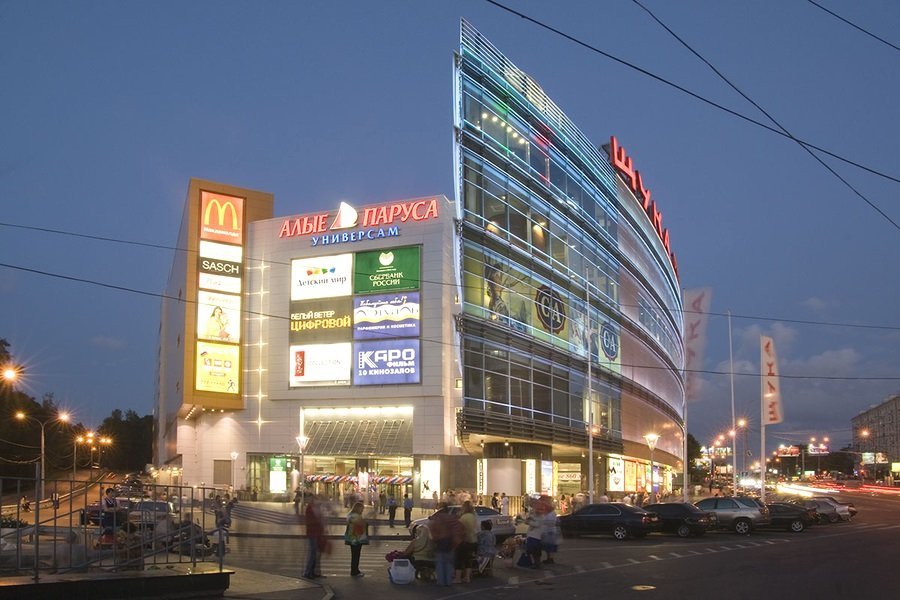 Торговый центр "Алые паруса" расположен рядом с метро Щукинская, рядом с остановкой общественного транспорта идущего в Строгино. Отсюда удобно выехать и на МКАД, и на ТТК. В Первый этаж ТЦ занимает круглосуточный супермаркет «Алые паруса», площадью 5.200 кв.м, на втором этаже – магазины одежды, обуви, товаров для дома. Для удобства покупателей в ТЦ размещены: аптека, салон красоты, химчистка, фотосалон и банкомат. Для детей оборудована игровая комната. Перед фасадом здания в наличии наземная парковка.