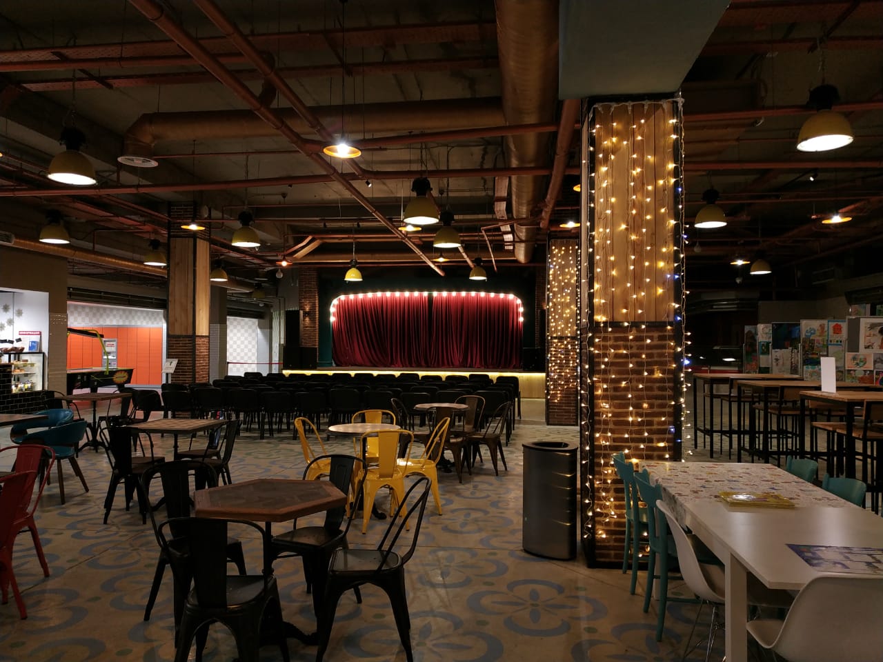 На -1 этаже на 2000 м2 запускается первый в Мытищах Фуд-холл, в котором найдется вкусная еда для самых требовательных гурманов. Сегодня уже работают: Вьетнамская кухня, Чебуречная СССР, Кофейня "Зерна", Смузи-Бар "Fresh&Shake" и напитки "Шок Бир".