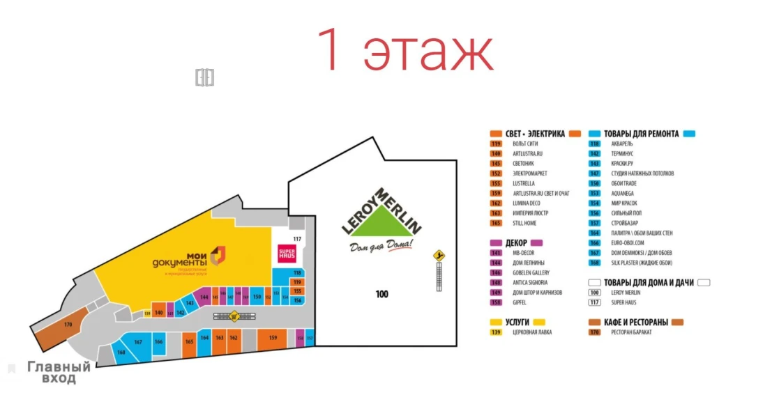 Планируете ремонт? – к вашим услугам крупнейшие сетевые магазины, предлагающие инструменты и строительные материалы. Хотите изменить обстановку в квартире? – на третьем и четвертом этажах находится один из самых обширных гипермаркетов мебели в Москве – «Мир Мебели». Там возможно найти что-то на любой вкус и в пределах вашего бюджета. Желаете воплотить в жизнь свои дизайнерские мечты? – в «Декораторе» представлен широкий ассортимент оригинальных аксессуаров и текстиля, которые помогут вам реализовать любые идеи. Ищете место, где есть всё необходимое? – добро пожаловать в Центр Мебели и Ремонта «Декоратор»!